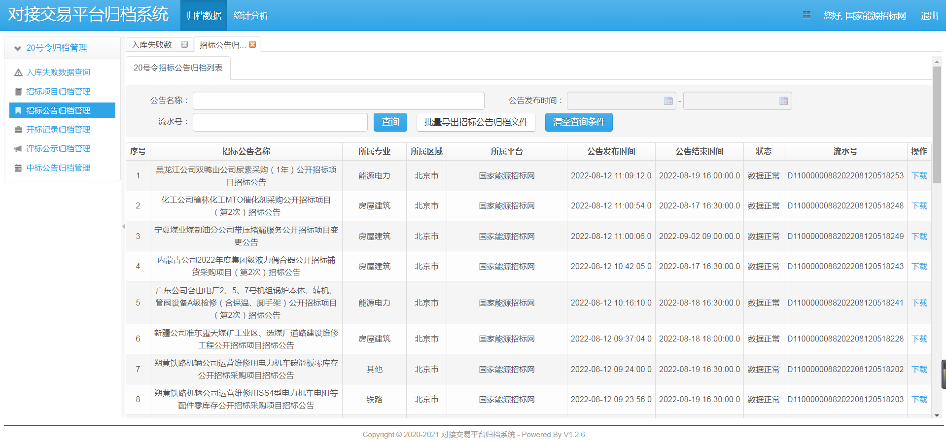"resultType": "10號令招標(biāo)公告歸檔列表",