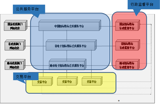 這就是電子招標投標制度誕生的主要背景和核心價值。降低交易成本、提高交易效率和節能減排等是信息化的初級目標。按照《電子招標投標辦法》,電子招標投標系統由交易平臺、公共服務平臺和行政監督平臺共同構成。這是我國招標投標制度和監管現狀以及信息一體共享與互聯網對接的共同要求決定了這一系統架構。