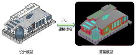 目前,國內已有軟件公司在進行設計模型與算量模型數據接口的開發,已經在實際工程進行了驗證和使用,如圖2所示,將滿足建模標準的設計Revit模型通過IFC文件格式導入到BIM工程量計算軟件中,從而將設計階段BIM模型傳遞到招投標階段的BIM模型進行算量,這種應用逐漸走向使用階段。