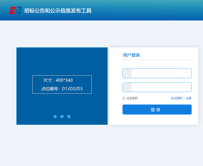 發布工具登錄頁輪播圖廣告位(左側)(一屏) D |